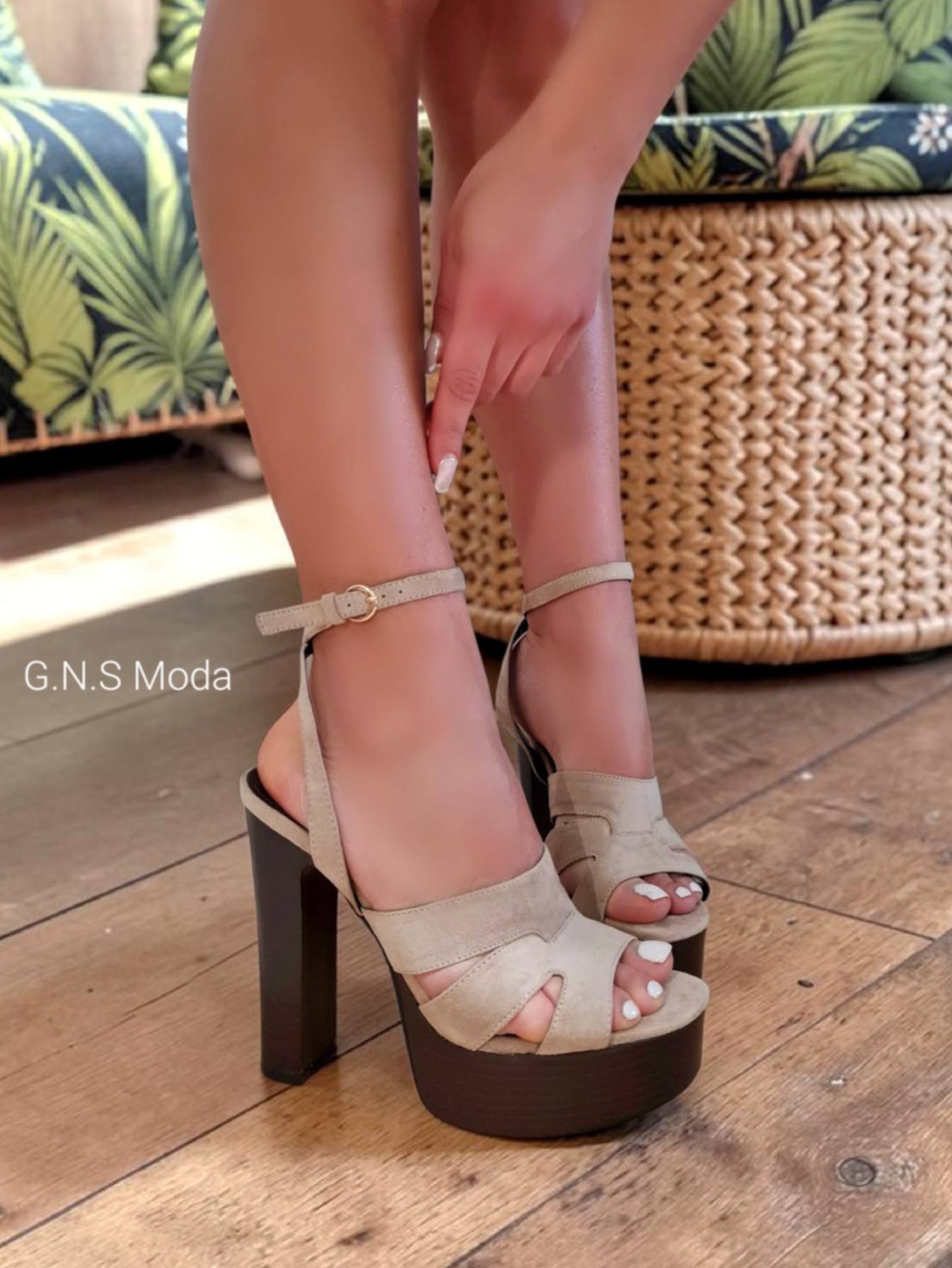 Sandali in pelle scamosciata ALTA QUALITA’ con suola “CUSCINETTO” e Tacco in VERO Legno.