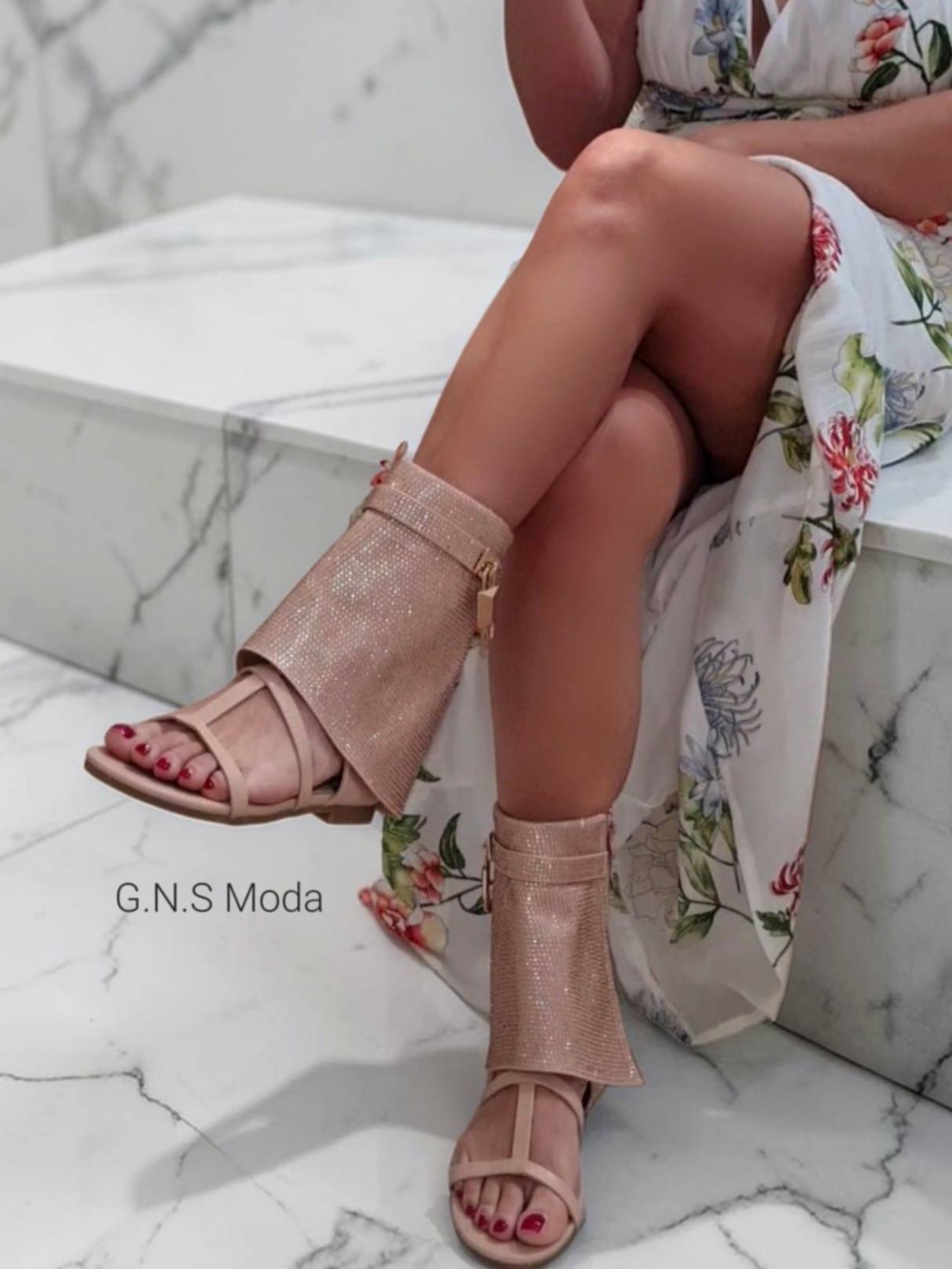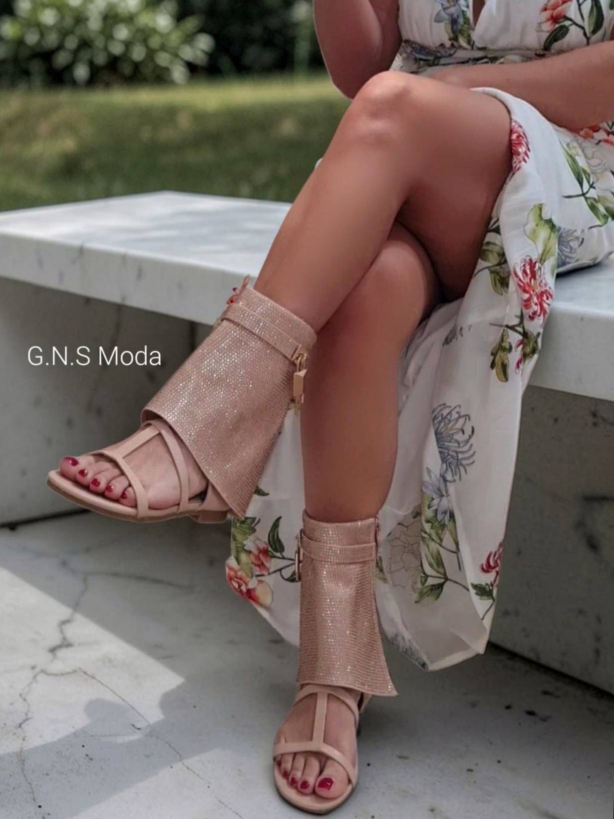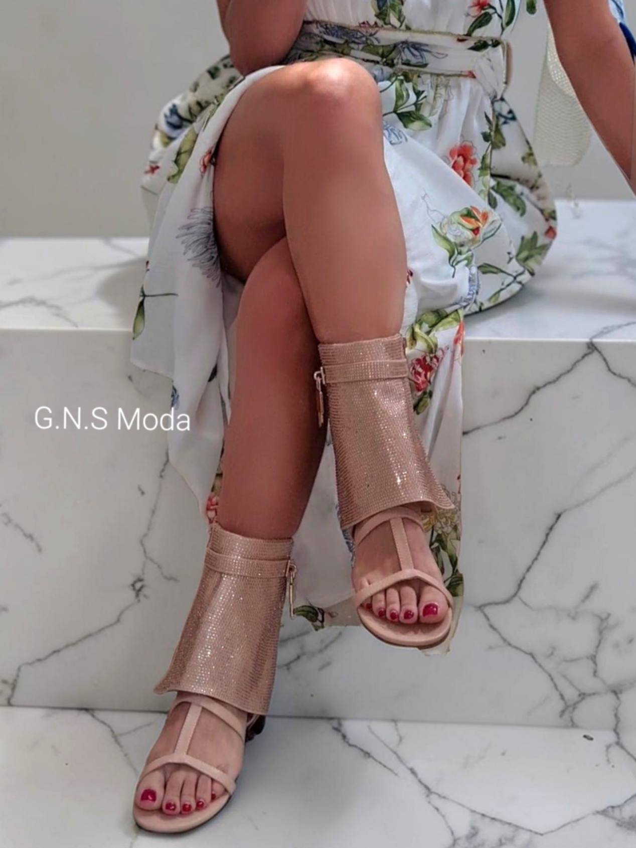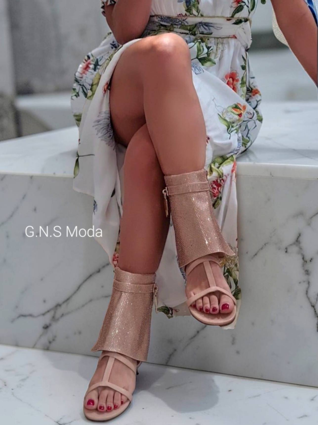 Sandali Gioiello con Risvolto, Cerniera , Pendente e Applicazioni Strass. Tacco sottile.