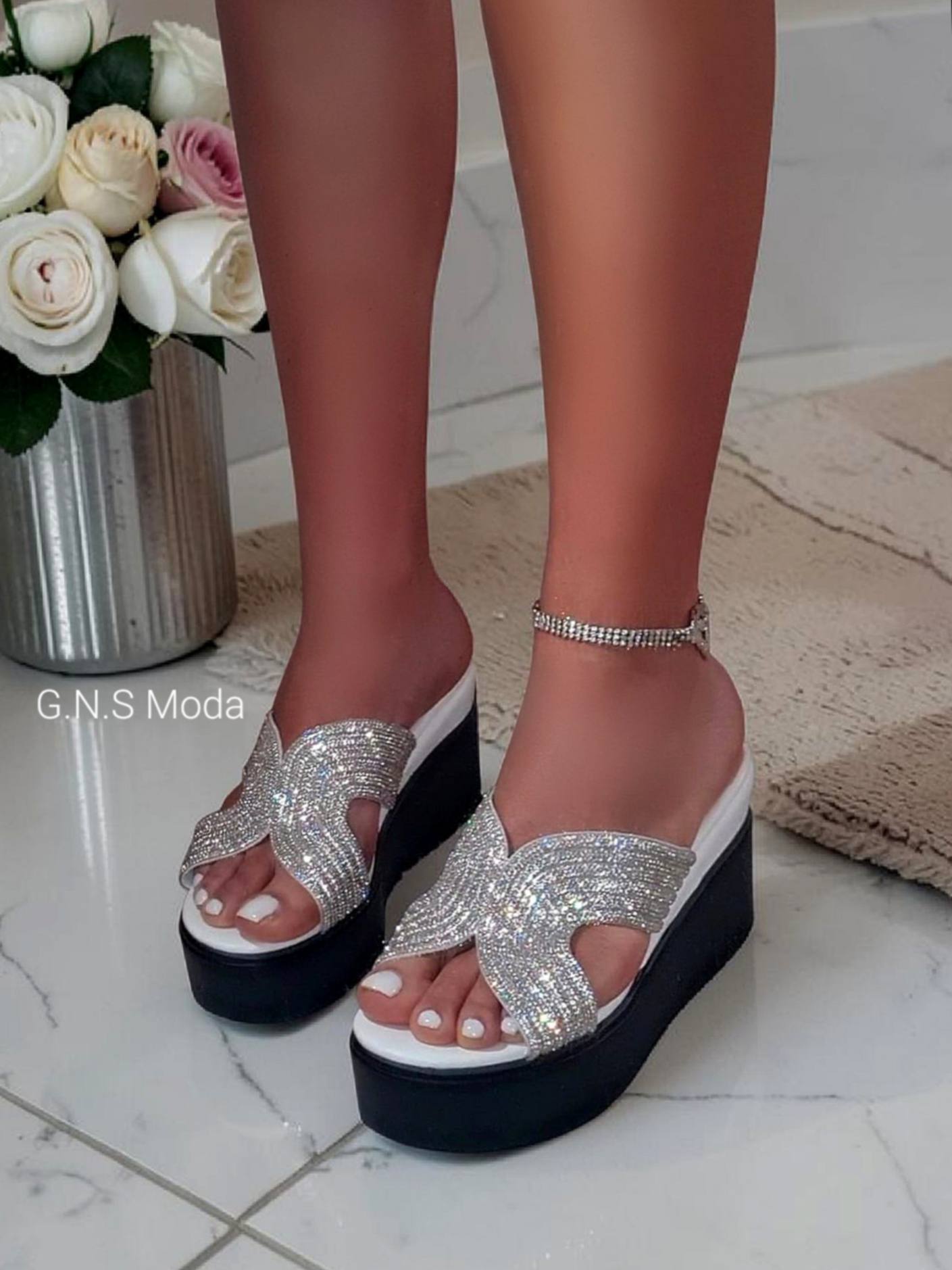 Sabot con zeppa COMFORT in pelle e fascia gioiello.