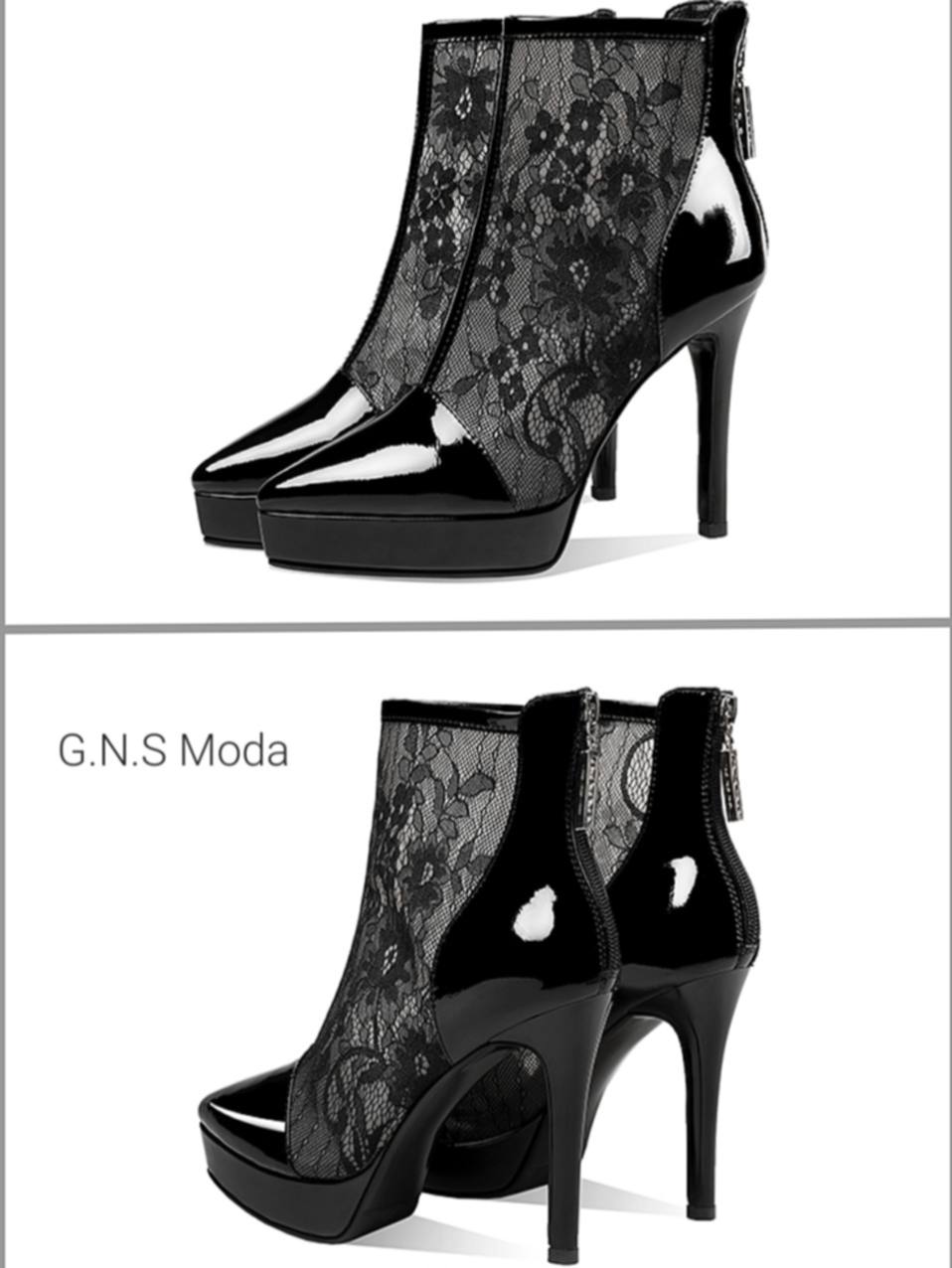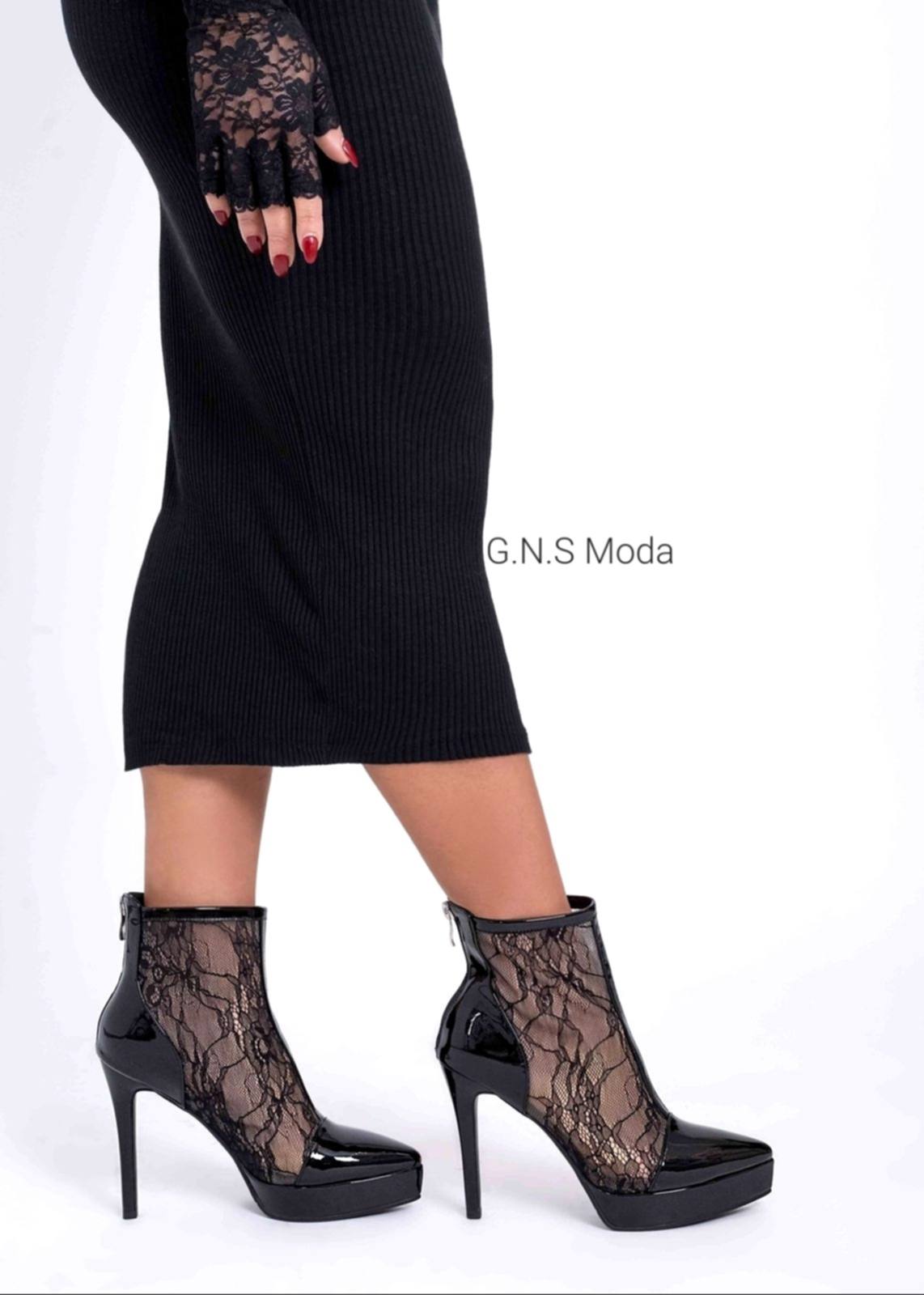 Tronchetto fatto a MANO in VERA PELLE Verniciata con Tomaia in Pizzo Foderato . Un Mix di CLASSE ed ELEGANZA per la tua  Femminilita’!